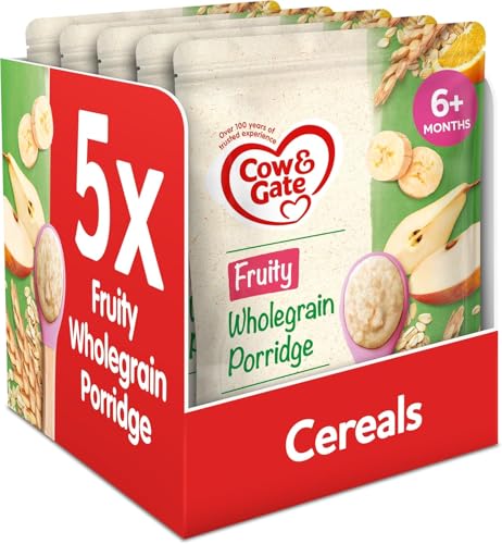 Cow & Gate Fruity Wholegrain Porridge Baby Food Cereal, 6+ Months, 125g (Pack of 5)