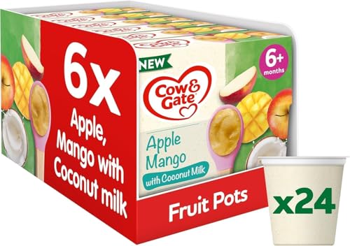 Cow & Gate Baby Food - Apple & Mango with Coconut Milk - Baby, Toddler and Kids Snacks - Fruit Pot Multipack - 6+ Months - 4x95g (24 Pots)