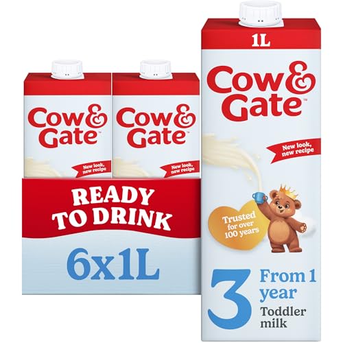 Cow & Gate 3 Toddler Baby Milk Ready to Use Liquid Formula, 1-3 Years, 1 L (Pack of 6) - Packaging May Vary