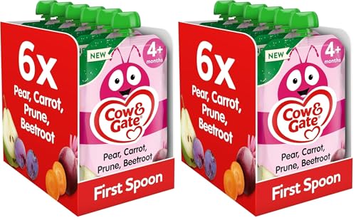 Cow & Gate Baby Food Pouches - Pear Carrot Prune & Beetroot - Baby Snacks for Weaning, Toddlers and Kids - Fruit Pouch Multipack - 4+ Months - 100g (Pack of 6)