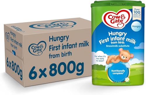 Cow & Gate Hungry Baby Milk Powder Formula, from Birth, 800g (Pack of 6)