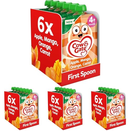 Cow & Gate Baby Food Pouches - Apple Mango Orange & Carrot - Baby Snacks for Weaning, Toddlers and Kids - Fruit Pouch Multipack - 4+ Months - 100g (Pack of 24)