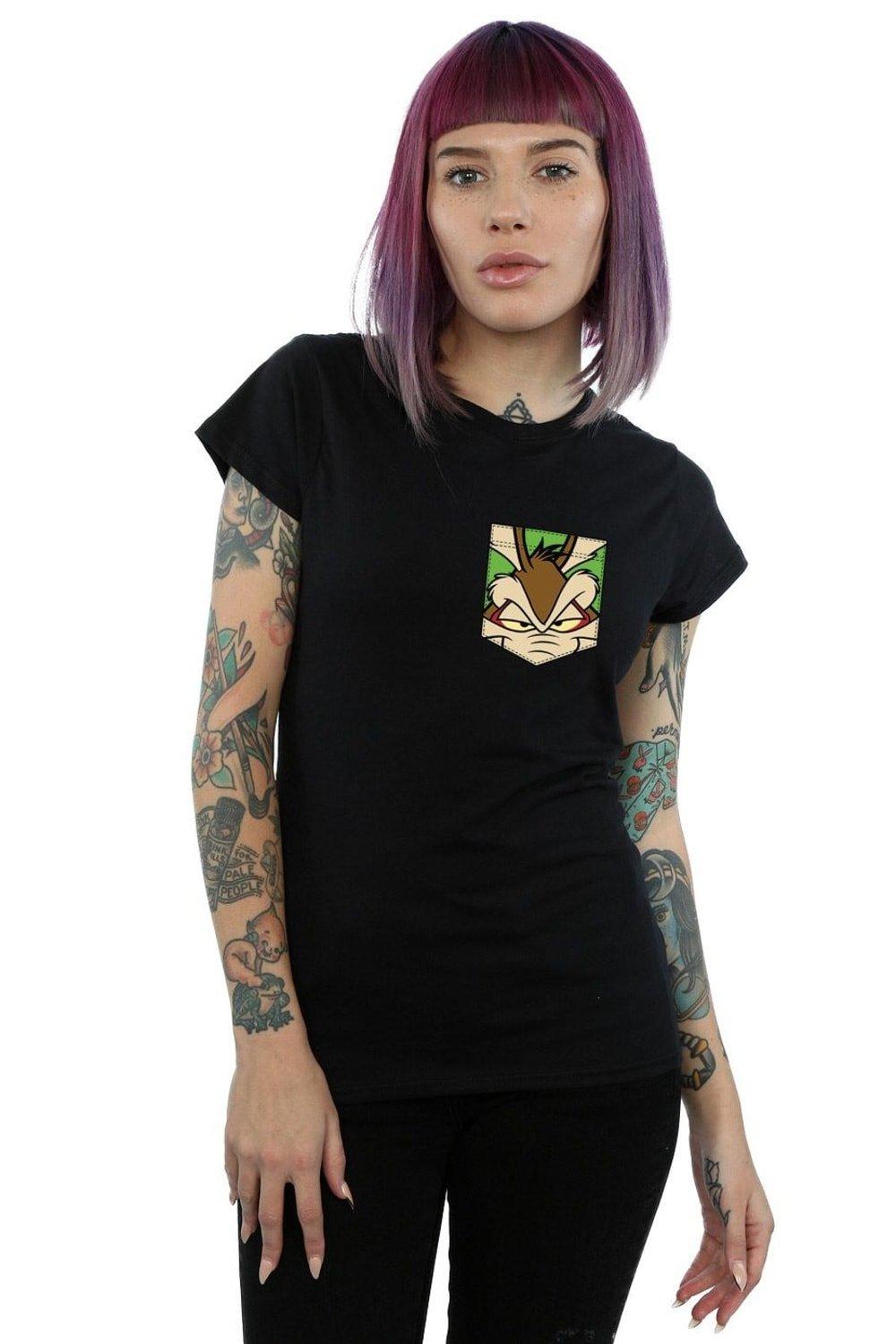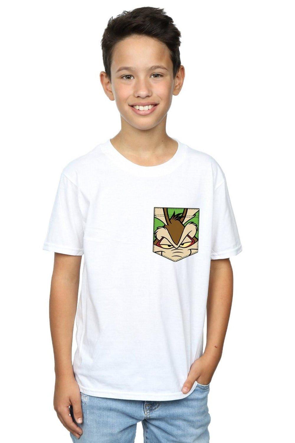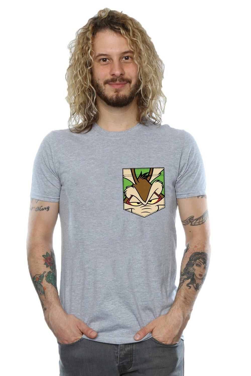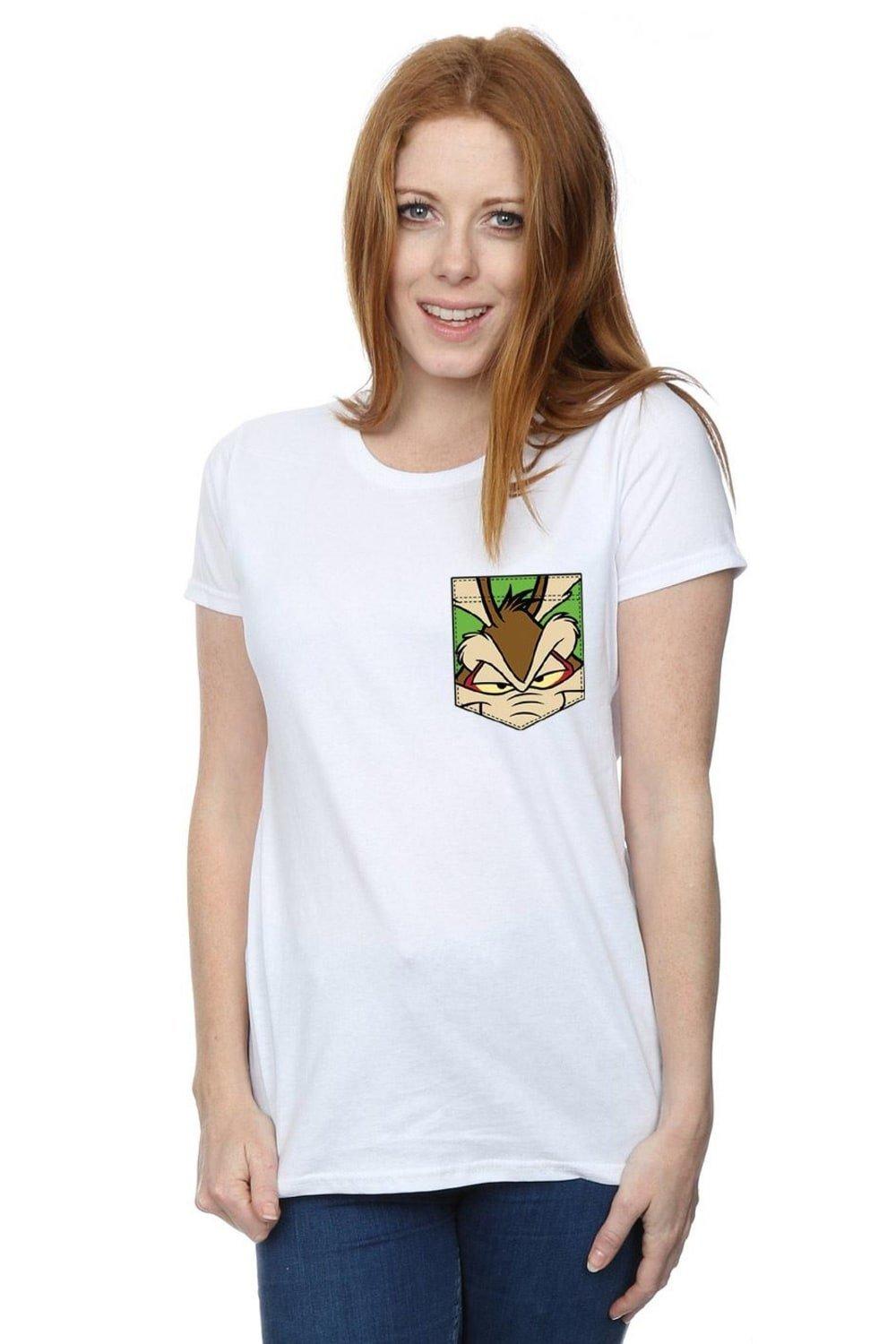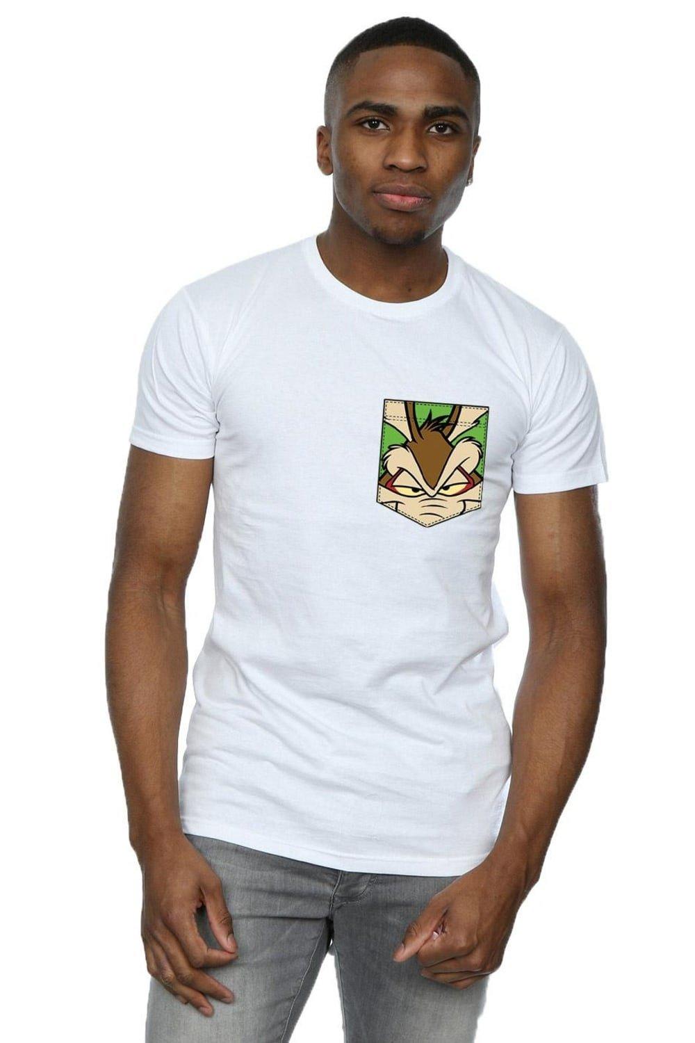 Wile E Coyote Face Faux Pocket Cotton T-Shirt