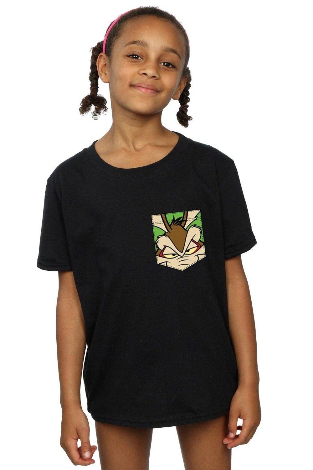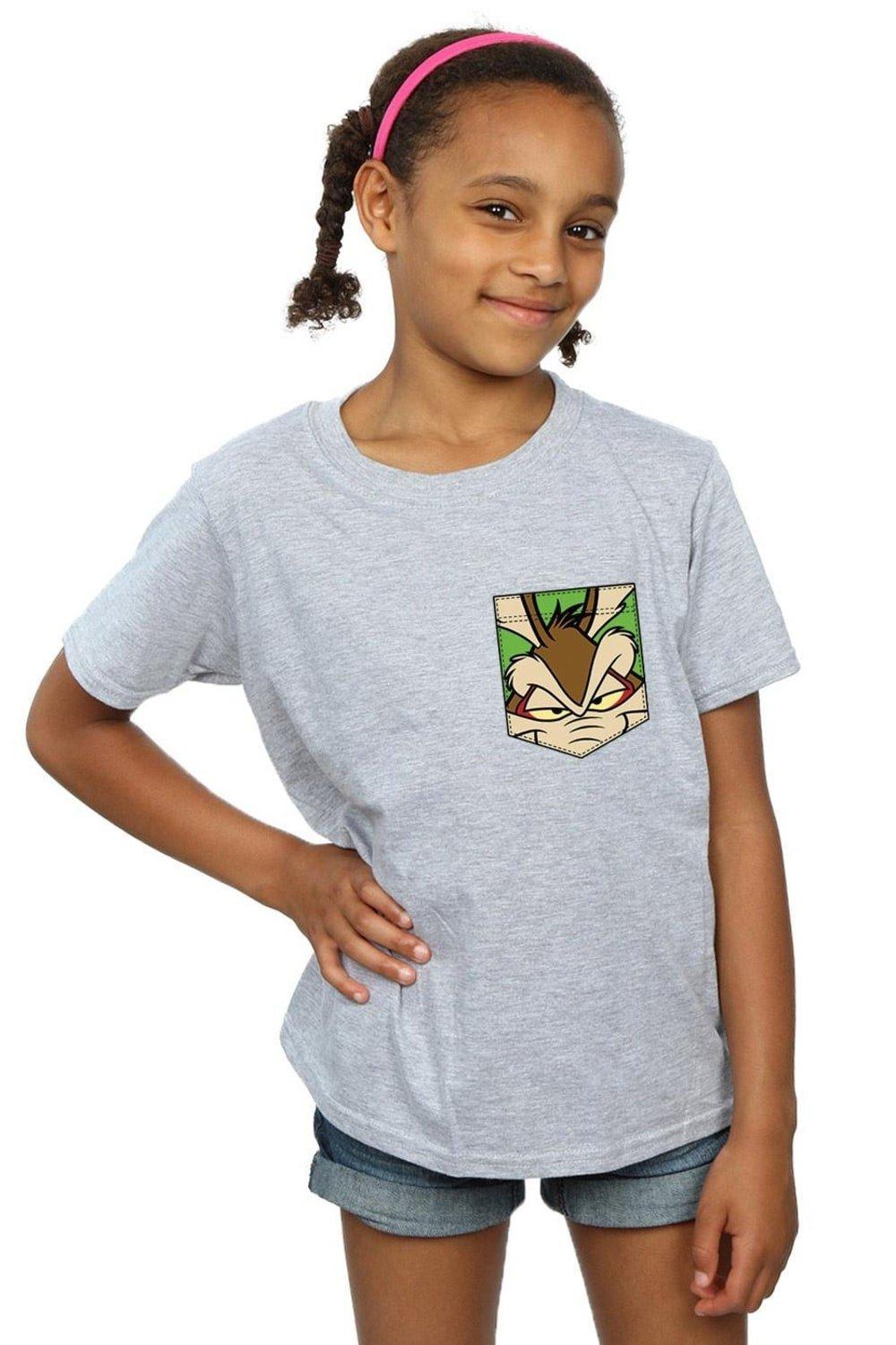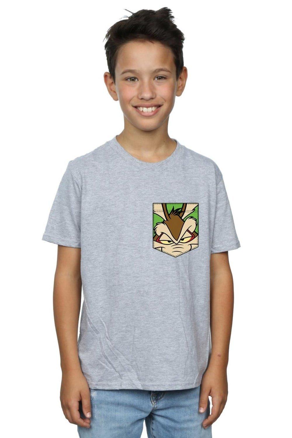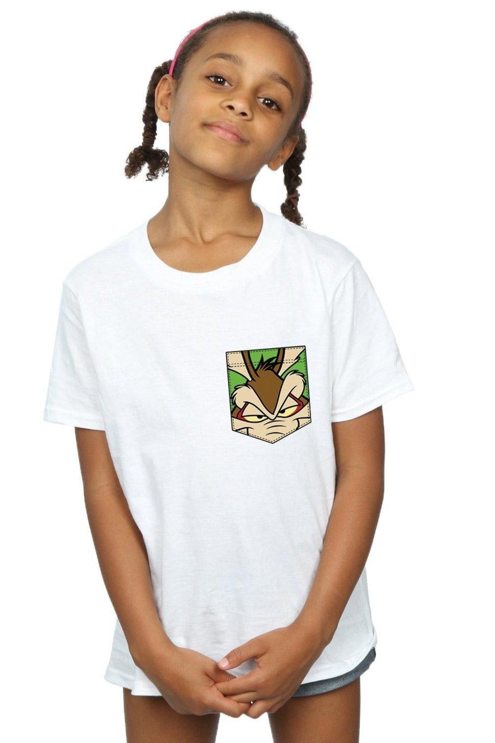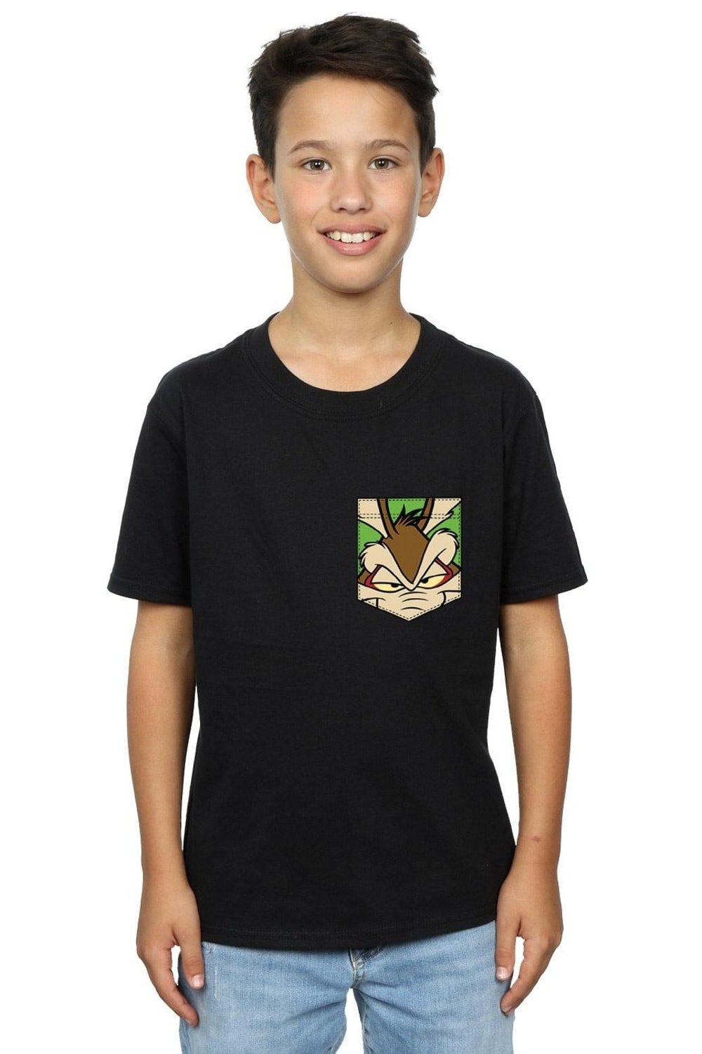 Wile E Coyote Face Faux Pocket Cotton T-Shirt