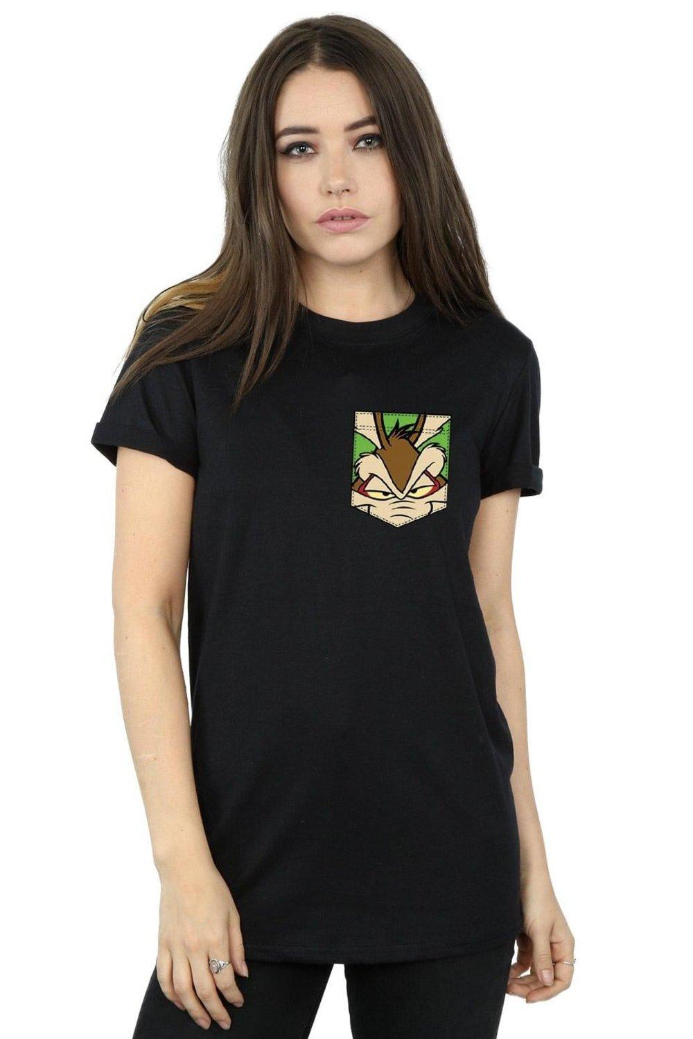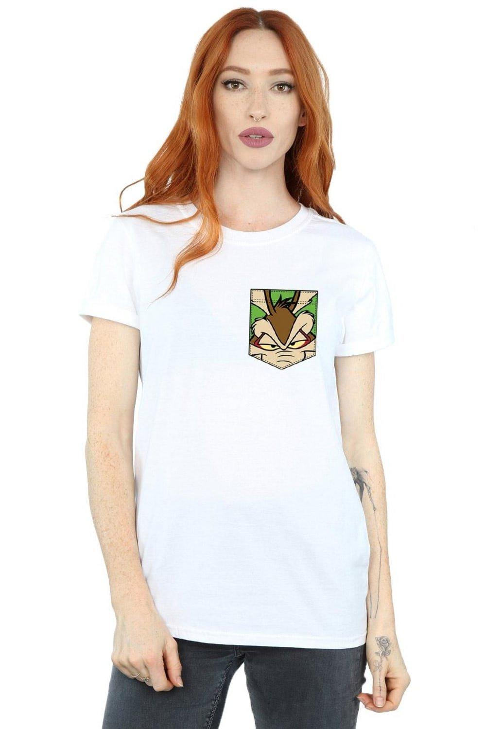 Wile E Coyote Face Faux Pocket Cotton Boyfriend T-Shirt