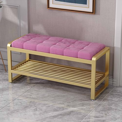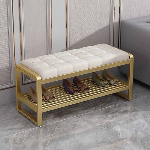 KaBuea 2-Tier Shoe Rack Shoe Bench, Gold Metal Frame + Cozy Velvet Seat – Perfect for Home, Entryway, Living Room to Save Space & Keep Shoes Tidy