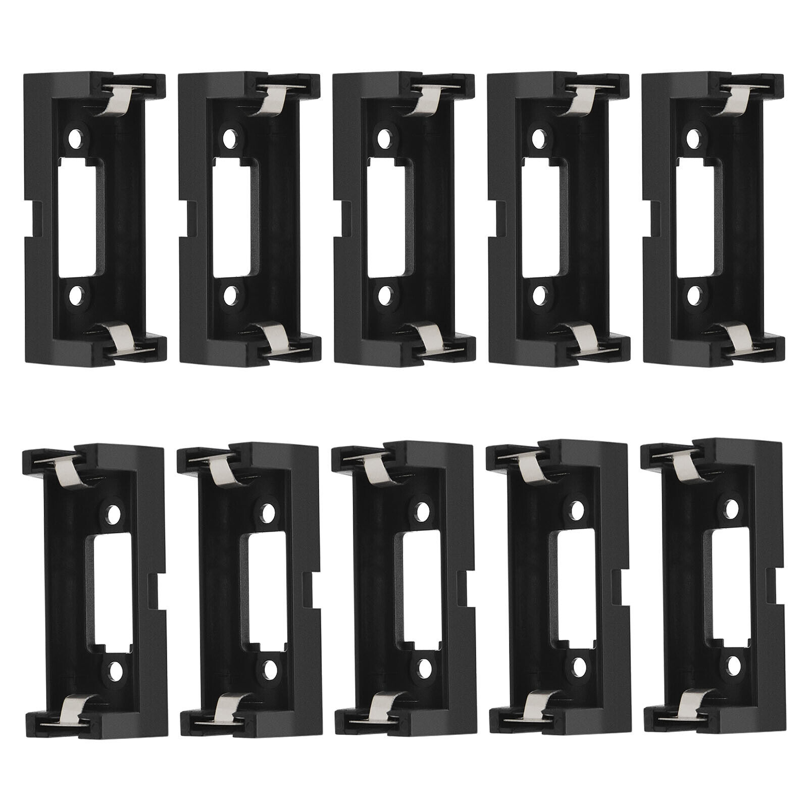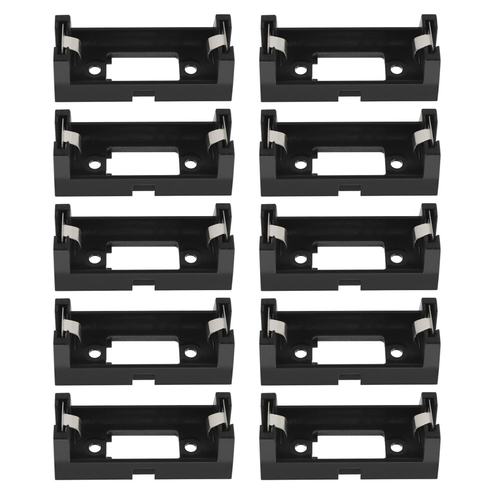 CR123A Battery Holder Pack of 10, Compatible PCB Single Cell Socket Housing, 2-Pin Black Plastic and Metal Design