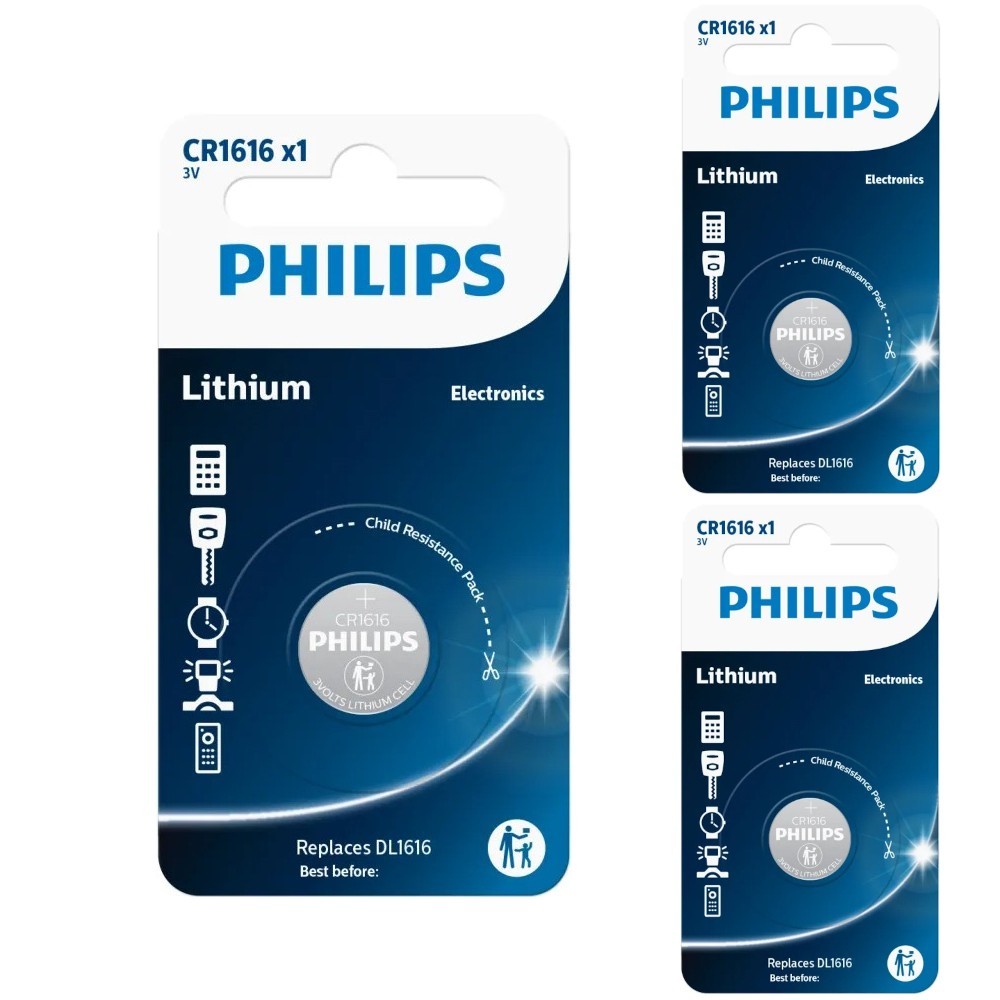 3 x PHILIPS CR1616 Lithium Battery 3V Coin Cell - 1616 DL1616 BR1616 Fob Remote