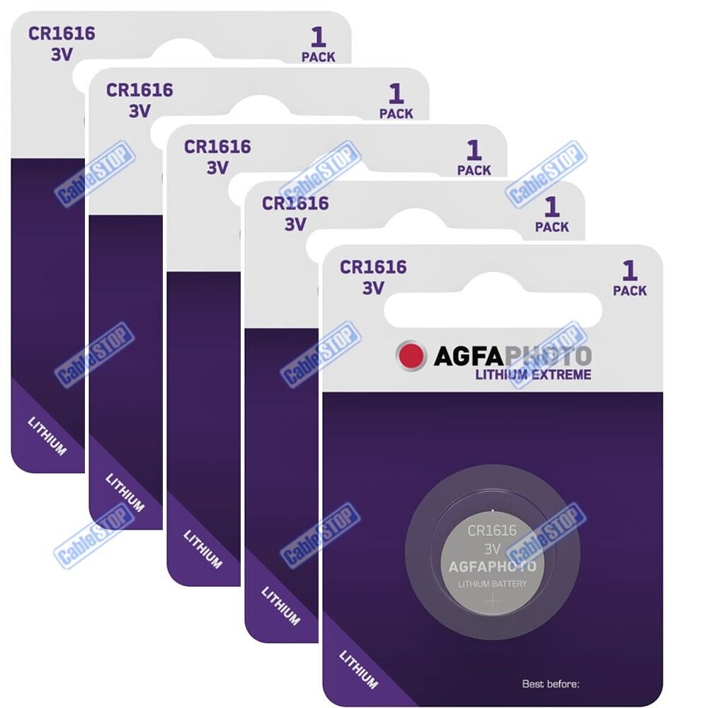 5 x CR1616 3V Lithium Button Battery AGFA Coin Cell DL1616 for Car Key Fobs
