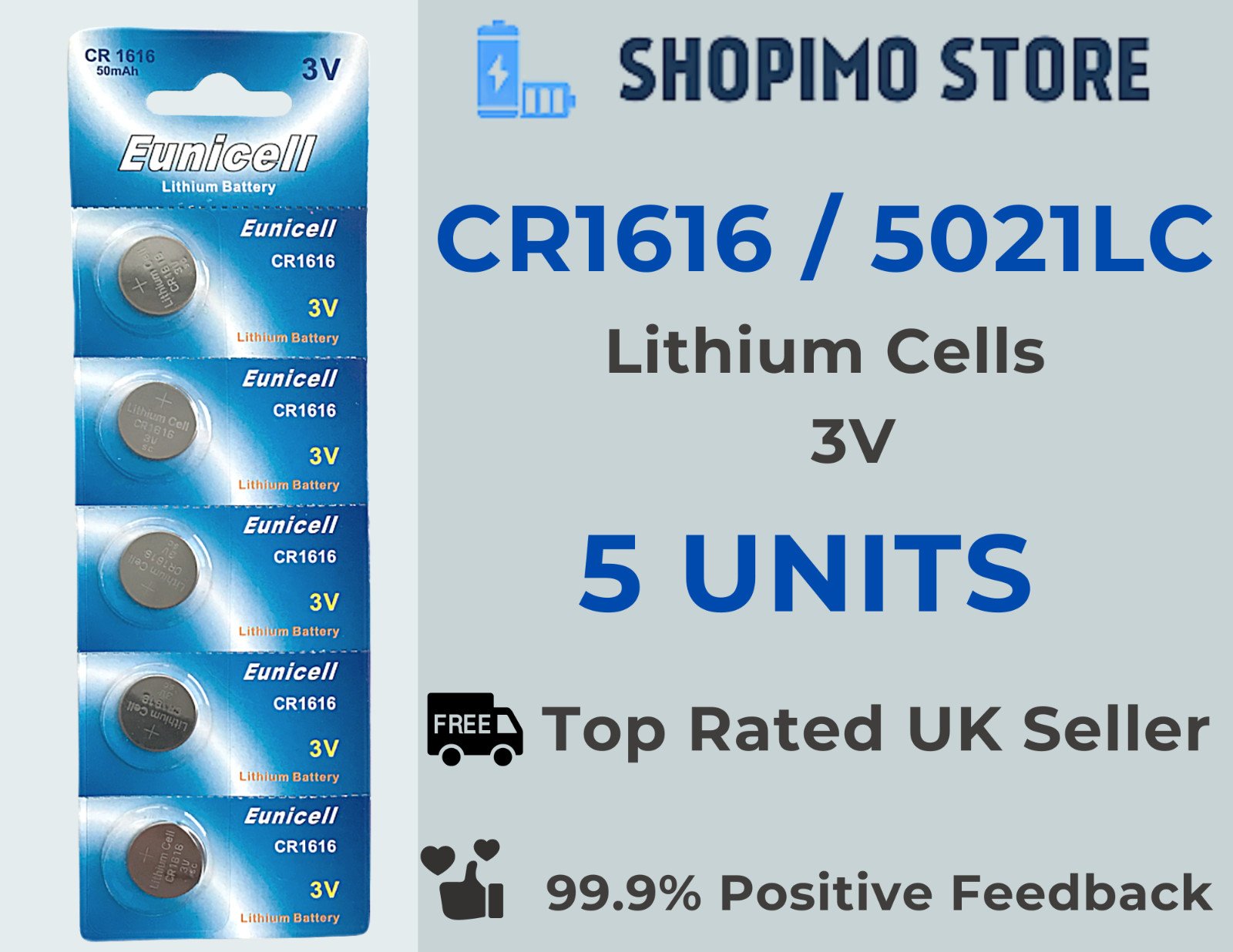 5 X CR1616 3V Button Battery - For Car Key, Watch, Calculator - UK Fast Shipping