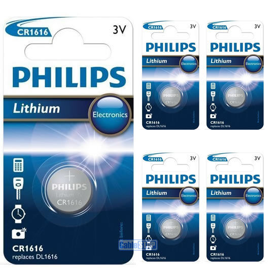 5 x CR1616 3V Lithium Philips Button Battery Coin Cell DL1616 for Car Key Fobs