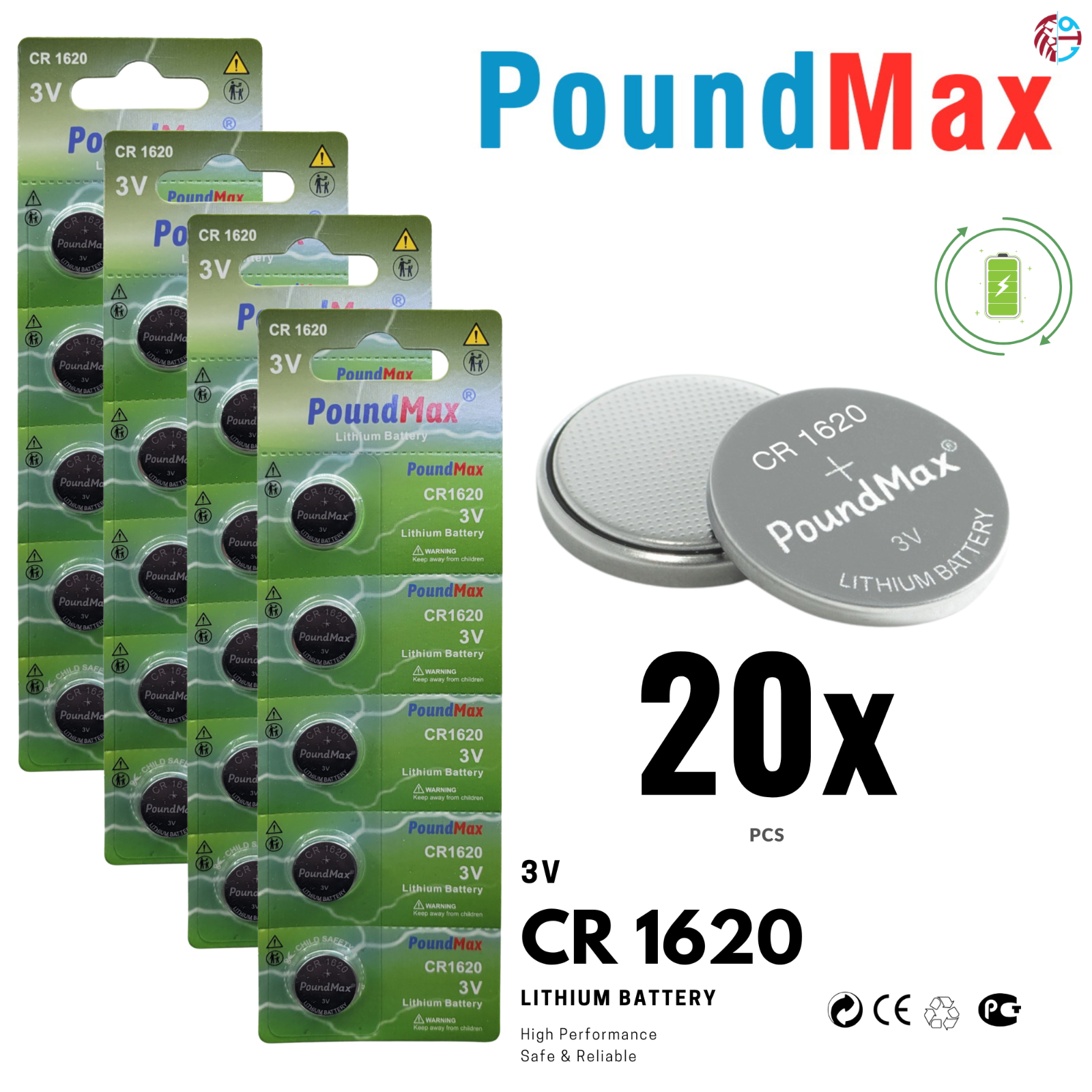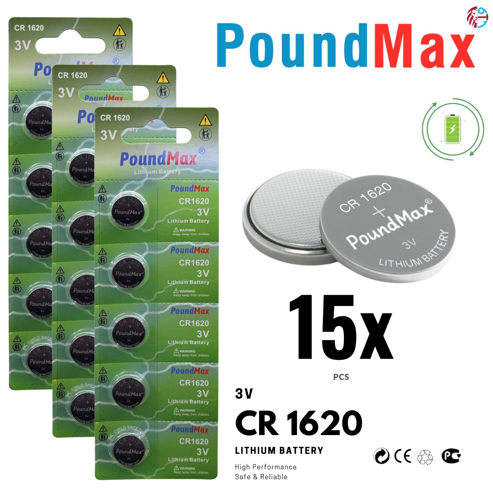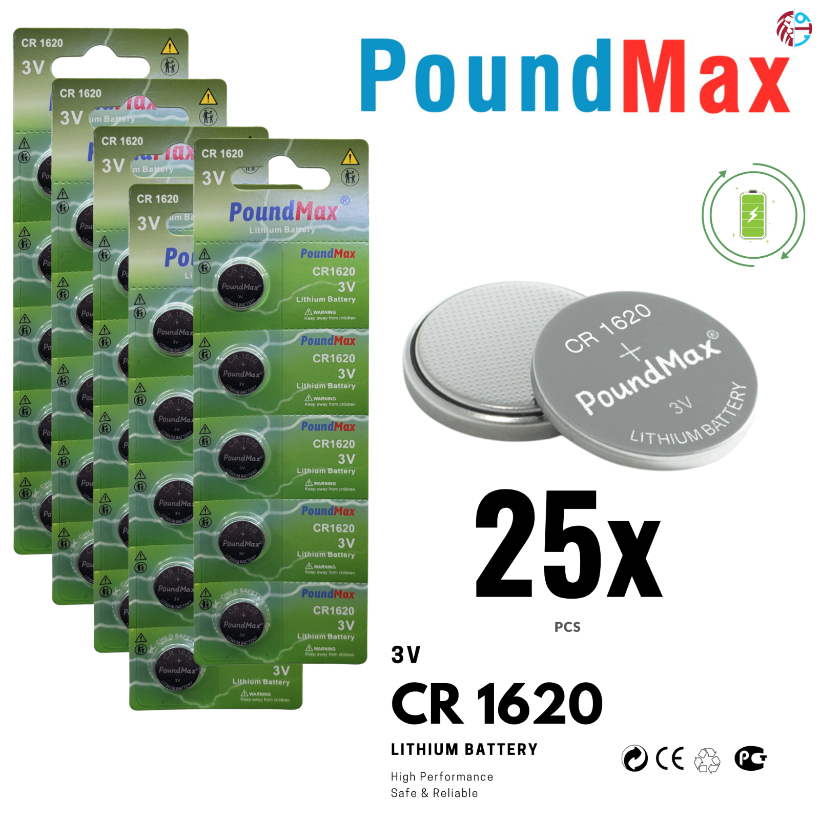 Power Peak CR1620 Battery - 3V Lithium Coin Cell B