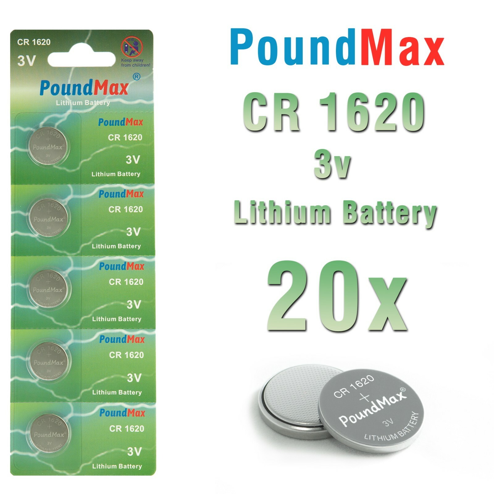 20 X CR1620 Lithium Battery 3V - Coin Cell for Car Key Watch Toy -Fast Dispatch