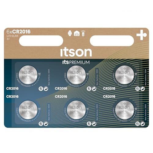 ITSON, CR2016 battery, 3V, coin lithium battery, pack of 6, best for car keys, watches and heart rate monitors