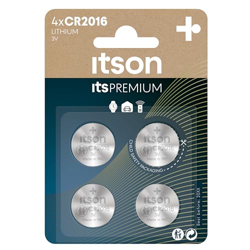ITSON, CR2016 battery, 3V, coin lithium battery, pack of 4, best for car keys, watches and heart rate monitors