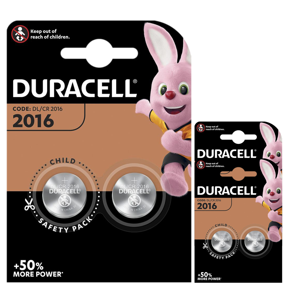 2 x Duracell CR2016 3V Lithium Coin Cell Battery 2016 DL2016 BR2016