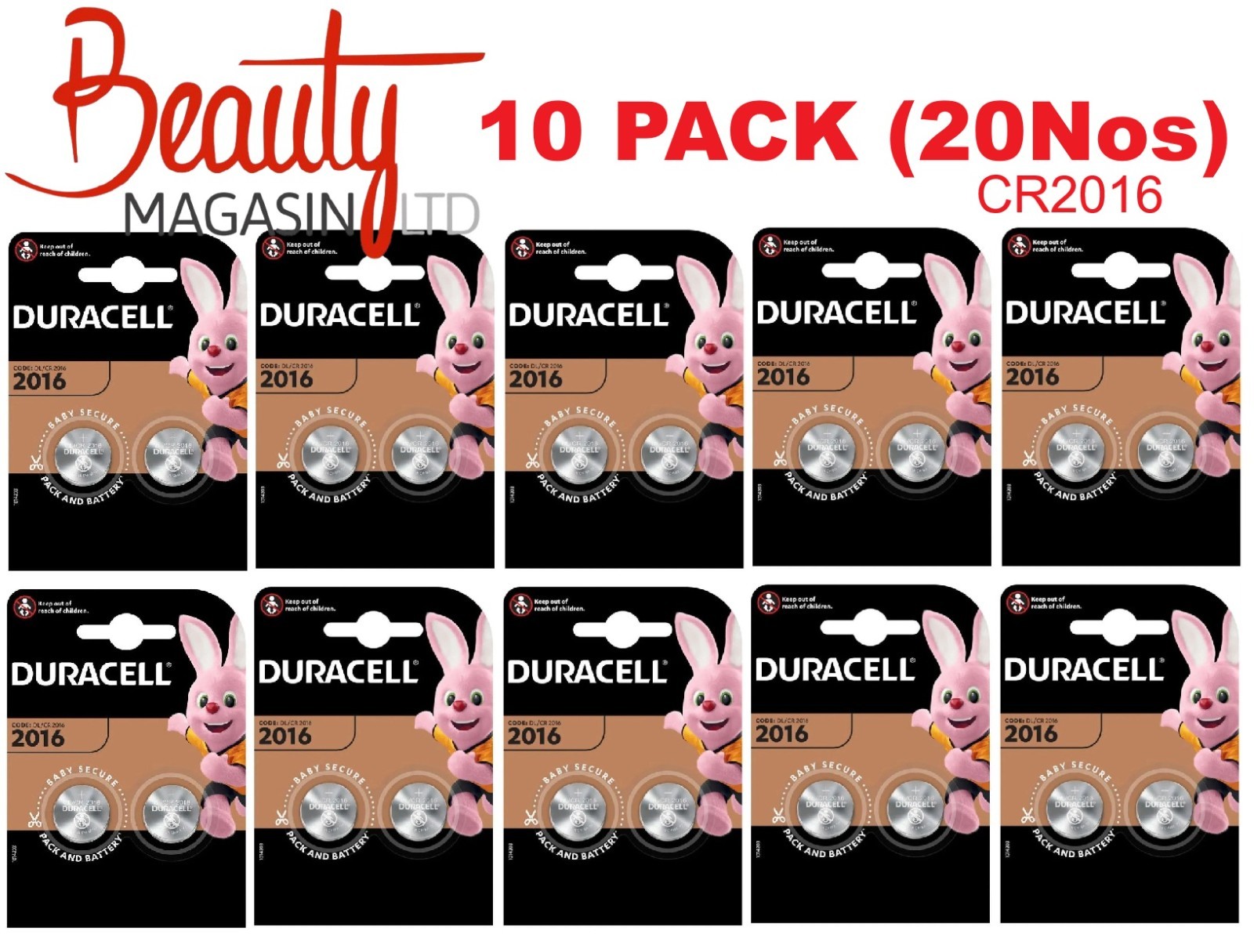 10 x Duracell CR2016 3V Lithium Coin Cell Battery 2016, DL2016, BR2016, SB-T11