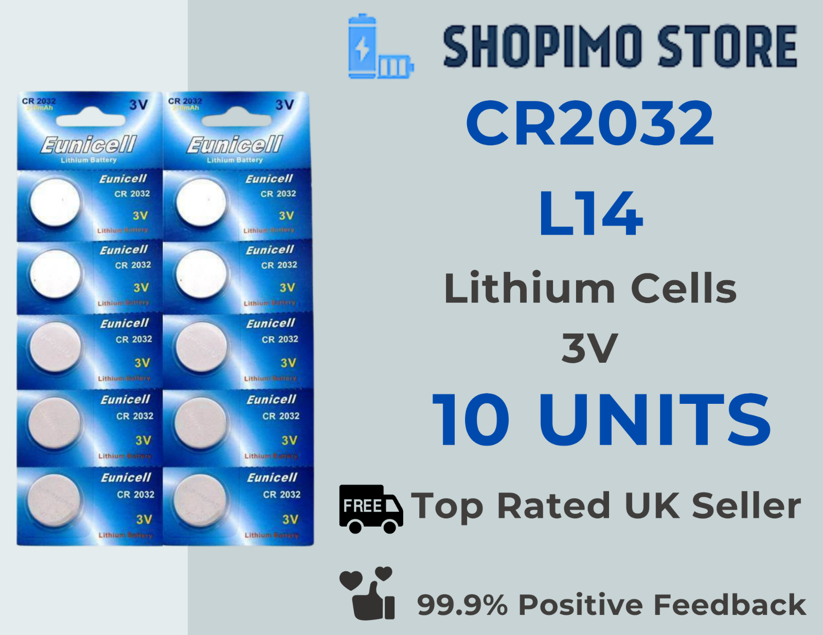 1.25, CR2032, Lithium, Button cell batteries