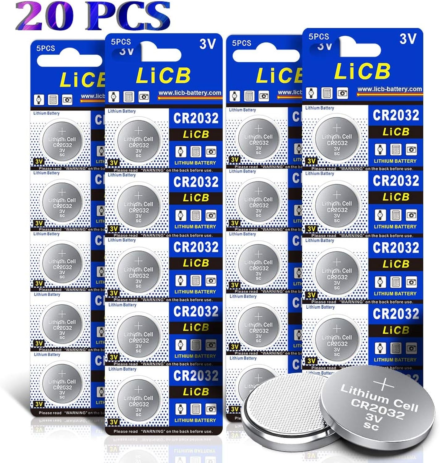 0.5, CR2032, Lithium, Button cell batteries