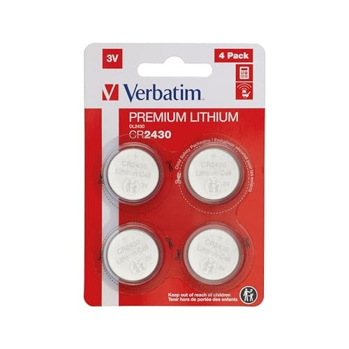 Verbatim Premium Lithium button cells CR2430 4-pack 3 V 290 mAh - Lithium Button Cell Batteries for Watch Car Key Remote Control Camera Toys & More - Button-battery Lithium-battery
