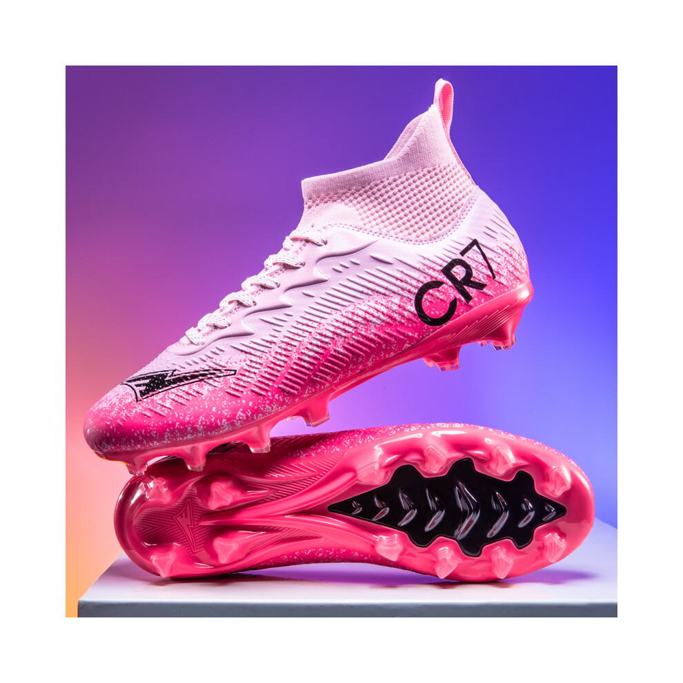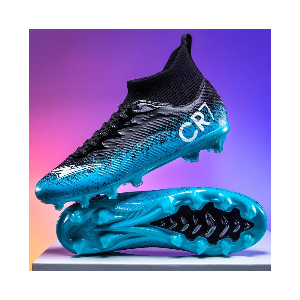 (37EUR) Cr7 High Upper Firm Ground Soccer Shoes Turf Football Boots Enhanced Control Training Footwear Model Size 35-44