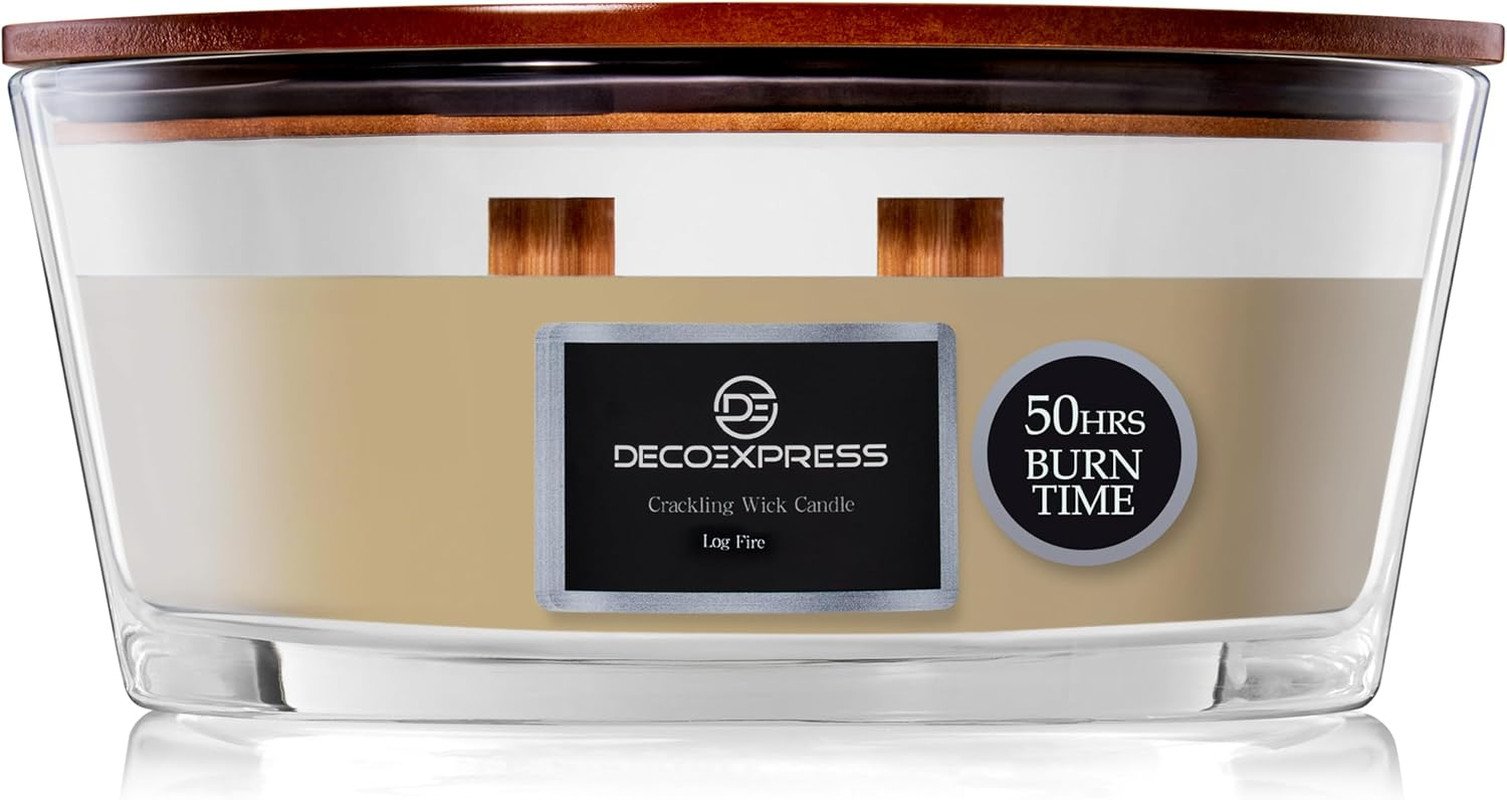 DECO EXPRESS Scented Candles Crackle Wick Candle Up to 50 Hour Burn Time Double Wick Ellipse Calming Cosy Home Decor Gifts for Her (Log Fire)