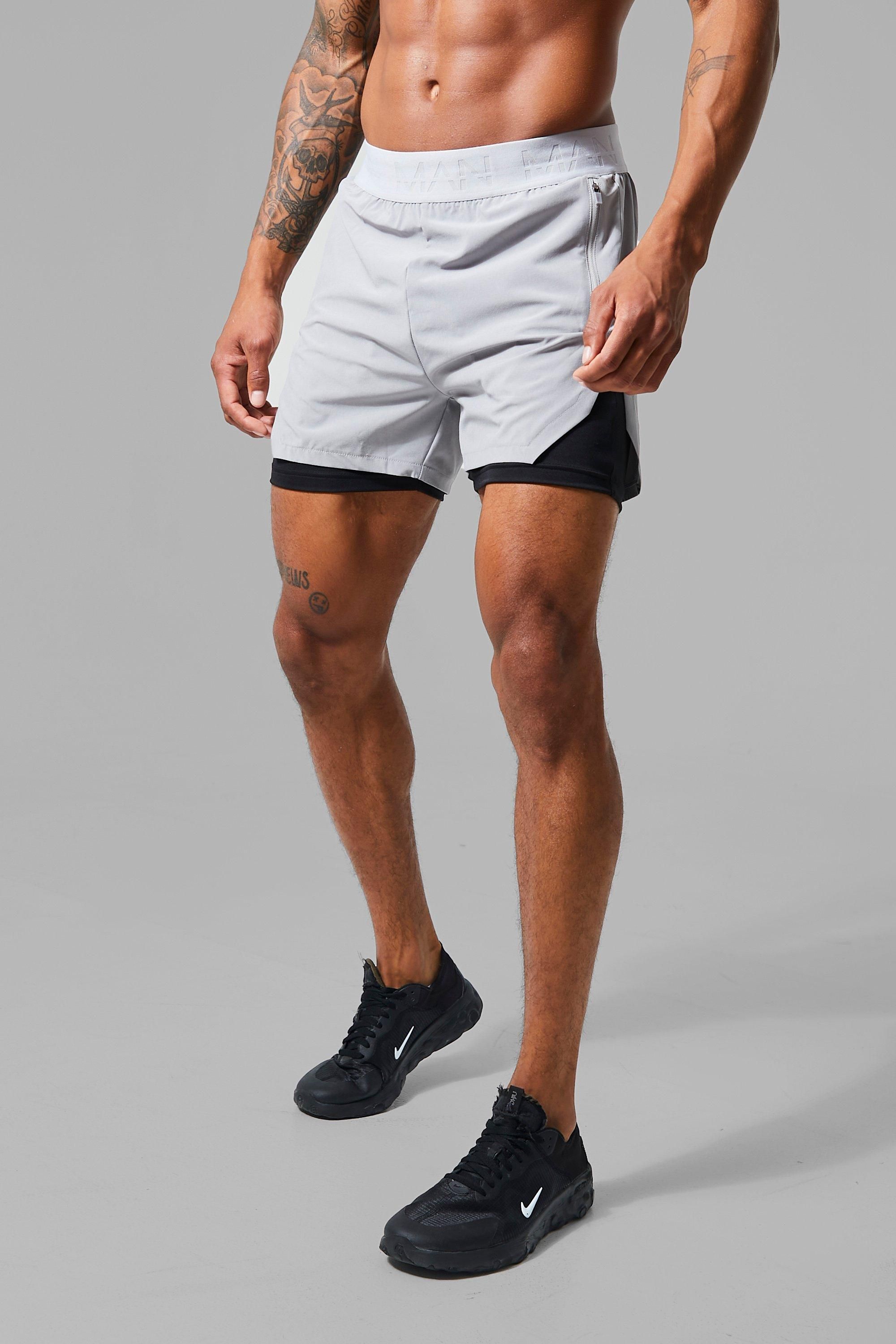 boohooMAN Mens Man Active Extreme Split 3inch 2-in-1 Regular Fit Short - Grey - Size X-Large