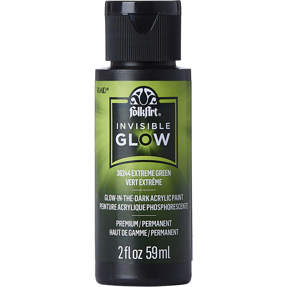 Folkart Invisible Glow Acrylic Paint 2oz-Extreme Green FAINV2OZ-36244