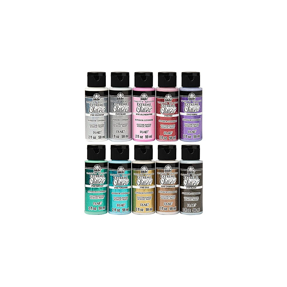 FolkArt Extreme Glitter Acrylic Craft Paint Set Formulated to be NonToxic and Designed for Beginners and Artists Ten 2 oz Bott