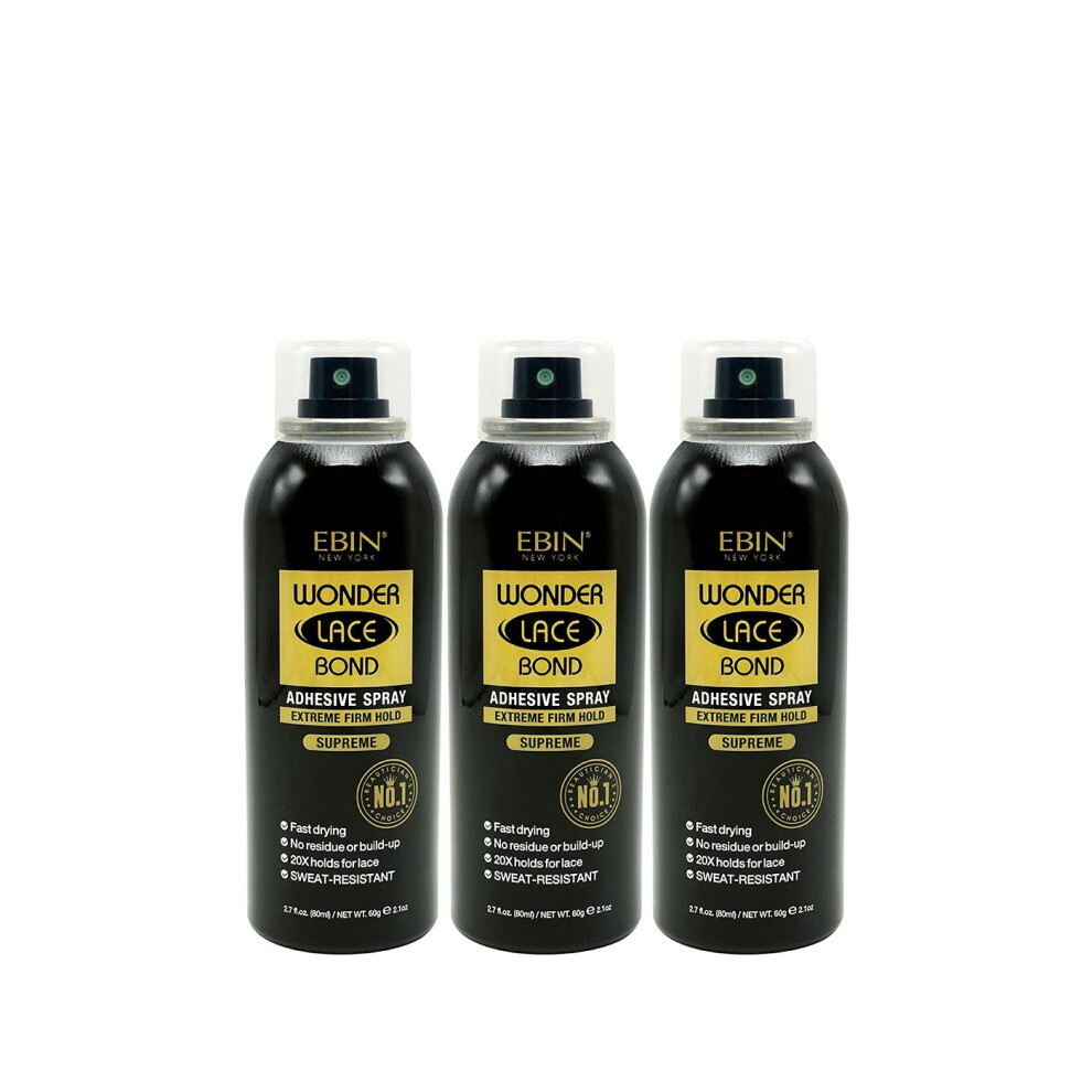 EBIN NEW YORK Wonder Lace Bond Adhesive Spray Supreme 3pack - Extreme Firm Hold 2.7oz/ 80ml | Active Use Fast Drying No Residue No Build-up P