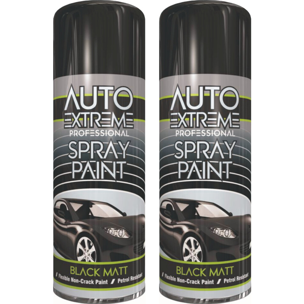 2 x 400ml Black Matt Spray Paint Auto Extreme DIY Wood Metal Art Craft