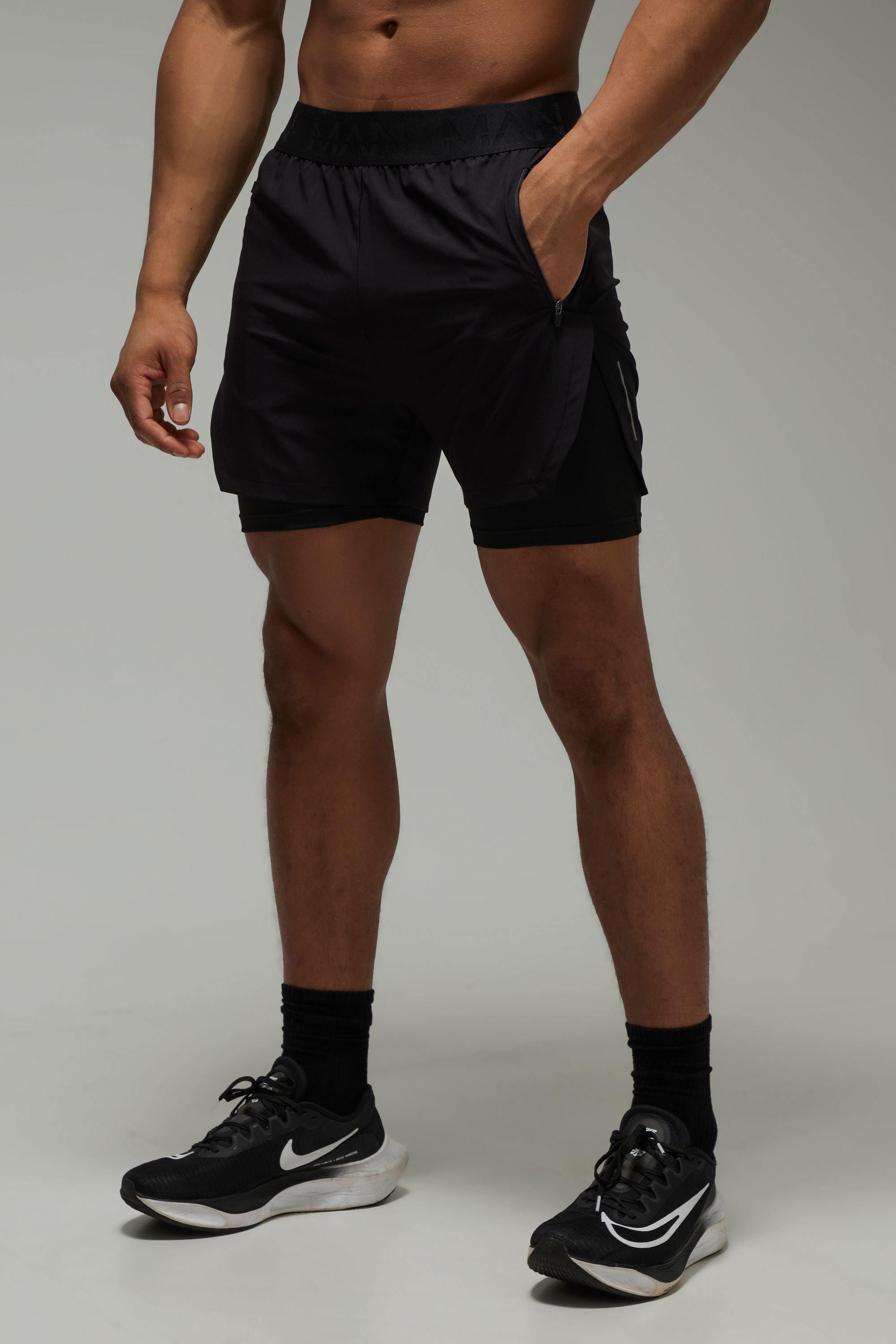 boohooMAN Mens Man Active Extreme Split 3inch 2-in-1 Regular Fit Short - Black - Size X-Small