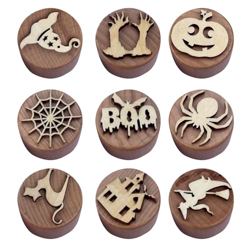 Générique Clay Stamp Toys Bulk - 9pcs Halloween Wood Clay Stamp Tool | Halloween Clay Stamps | Toys Time Bulk | Handmade Plastic Clay Stamp for Wooden Clay Craft