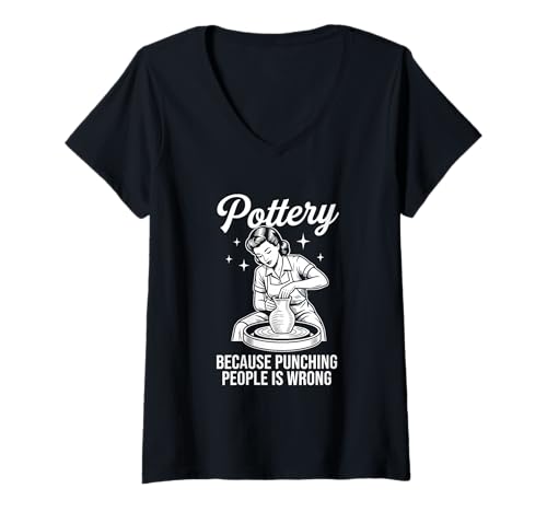 Women's Pottery Because Punching People is Wrong Ceramic Clay Craft V-Neck T-Shirt
