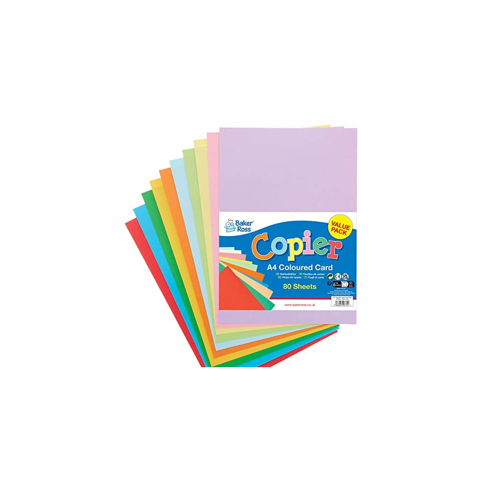 FX840 A4 Coloured Copier Card Pack - Pack of 80, Classroom Craft Essential, Arts and Crafts for Kids, School Supplies