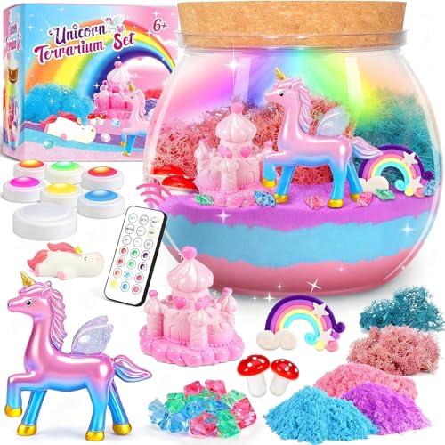 Lovchil Unicorns Gifts for Girls, Unicorn Terrarium Kit for Kids, Craft Kits for Kids Light-Up Unicorn Gifts DIY Unicorns Toys for Birthday Easter Gifts for Girl Ages 4 5 6 7 8-12 Year Old