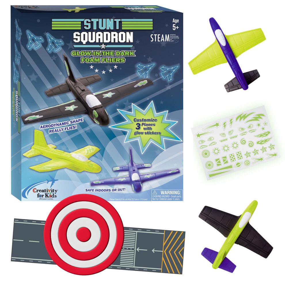 Creativity for Kids Stunt Squadron Glow-in-The-Dark Foam Fliers - Create 3 Foam Airplane Toys STEM Kits for Kids Craft and Science Kits for Kids To