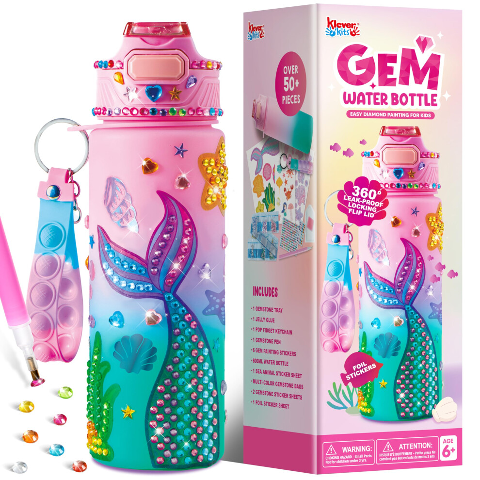 Klever Kits Kids Water Bottle Decoration,Arts and Craft Kits for Kids,Decorate Your Own Water Bottle Kit for Girls Age 6 7 8 9 10 11 12,Mermaid