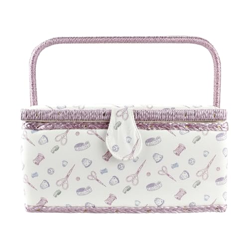 Sewing Basket - Craft Storage Box Set, Multiple Compartments, Yarn Needle Tray | Perfect Large Kit with Removable Kit for Quilting, Crochet, Home, Travel, Hobby Accessories, Women, Adults