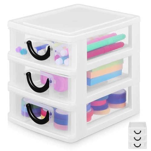 GALPADA Mini White Plastic 3-Layer Drawer Organizer for Desk, Makeup and Craft Storage Box, Desktop Organizer with Drawers for Office and Home Use