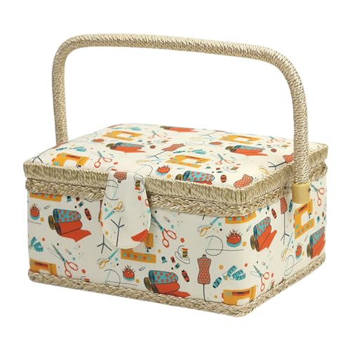 Sewing Box - Storage Basket for Sewing Kit with Removable Tray, Storage Craft Accessories, Box with Multiple Compartments | Basket for Thread Needles, Quilting, Crochet, Crafts, Women
