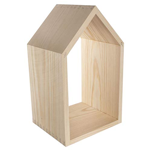WooDeeDoo Medium Wooden House Shaped Wall Shelf 20 x 13 x 30 cm Open Back Pine Display Unit for Kids Room Bedroom Nursery Craft Wall Storage Decorative Unfinished DIY Shelf Plain Natural Wood