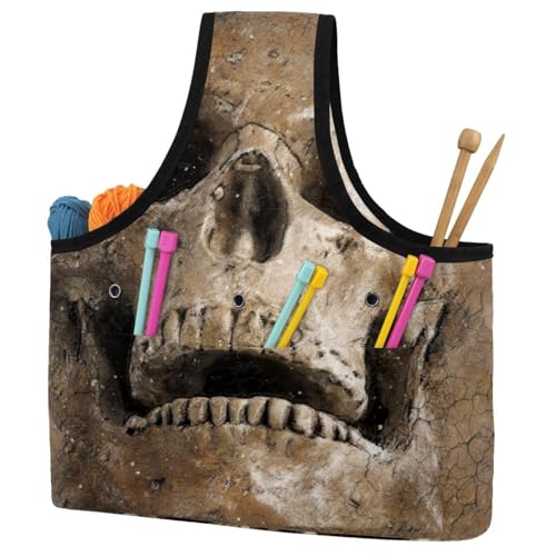 VAPOKF Yarn Storage Bag, Knitting Crochet Tote Bag, Yarn Holder with Pockets for Crocheting, Knitting Accessories (Skull Cranium)