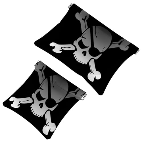 2 PCS Skull Cranium Pirate Pocket Cosmetic Bag, Self-Closing Shrapnel Makeup Pouch, Portable No Zipper Mini Travel Make Up Bag for Headphones Coin Lipstick Cosmetics Earphones Jewelry Organizer