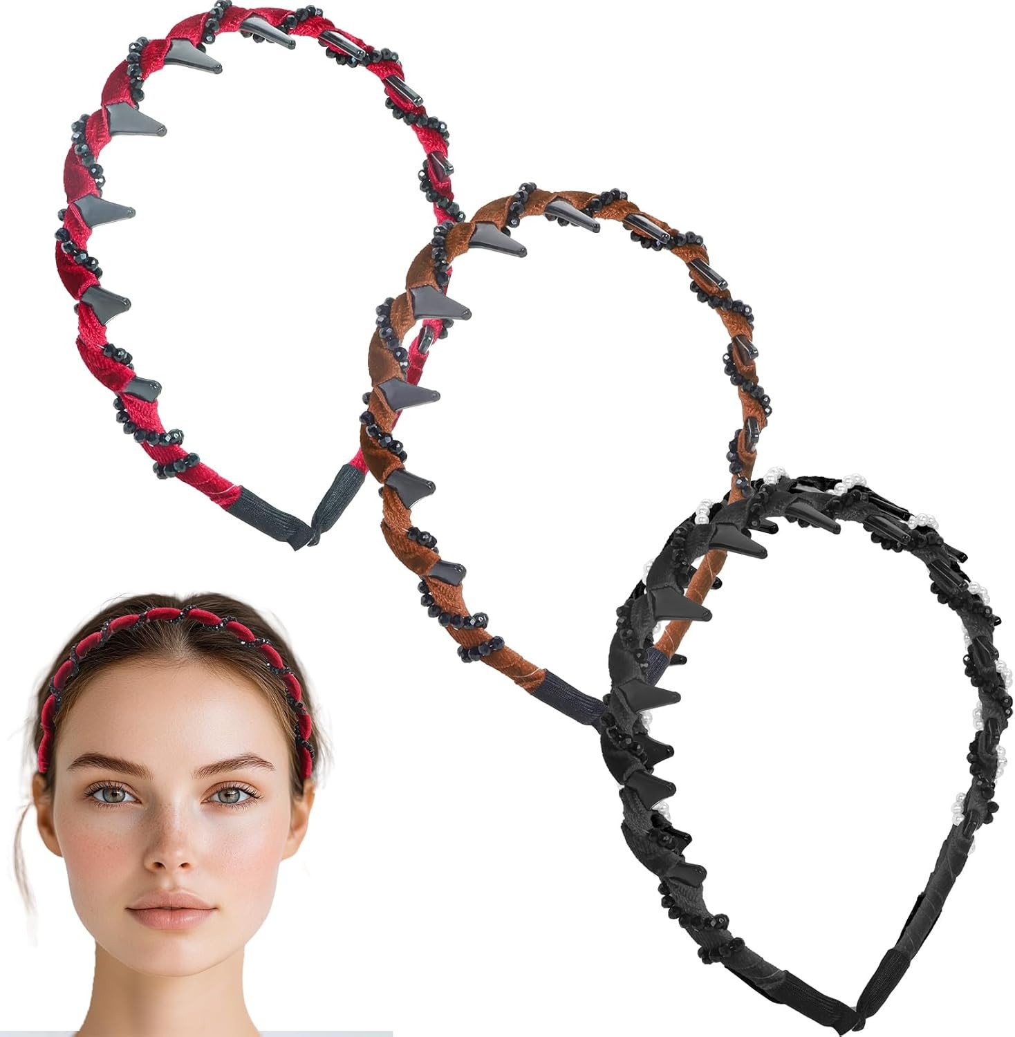 Bcautay 3Pcs Vintage High Cranium Artificial Pearl Hairband Fashion Accessories Braid Tool Non Slip Hairband For Women's Hair,Bands Fashion Hair Accessories Gift (Crystal)