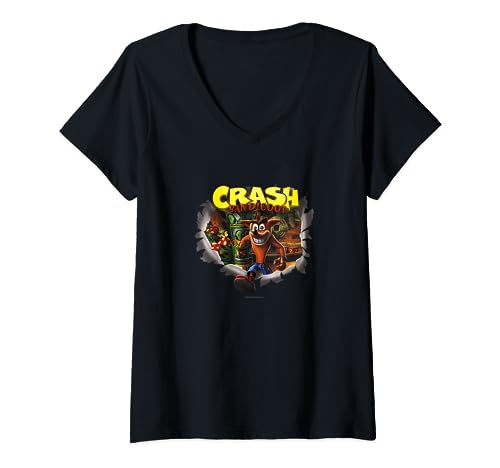 Womens Crash Bandicoot Vintage Island Breakthrough Game Poster V-Neck T-Shirt