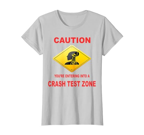 Caution You are Entering Into a Crash Test Zone Dummy Sign T-Shirt, Women, Silver Grey, Small