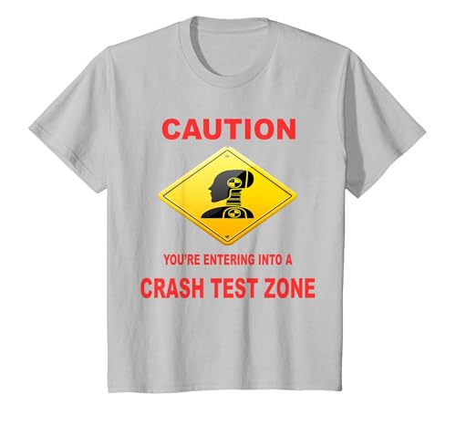Caution You are Entering Into a Crash Test Zone Dummy Sign T-Shirt, Youth, Silver Grey, Large