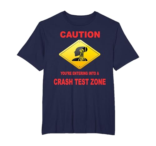 Caution You are Entering Into a Crash Test Zone Dummy Sign T-Shirt, Men, Navy Blue, X-Large