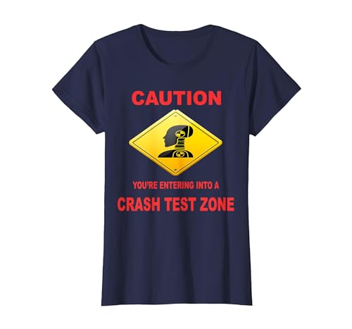 Caution You are Entering Into a Crash Test Zone Dummy Sign T-Shirt, Women, Navy Blue, Large